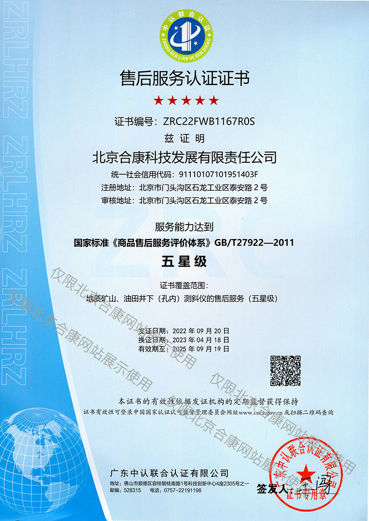 北京平和荣获GB/T 27922-2011《商品售后服务评价体系》标准五星级认证证书!