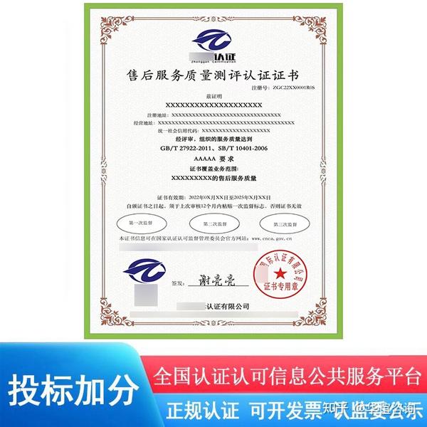 售后服务完善程度认证证书 - 知乎
