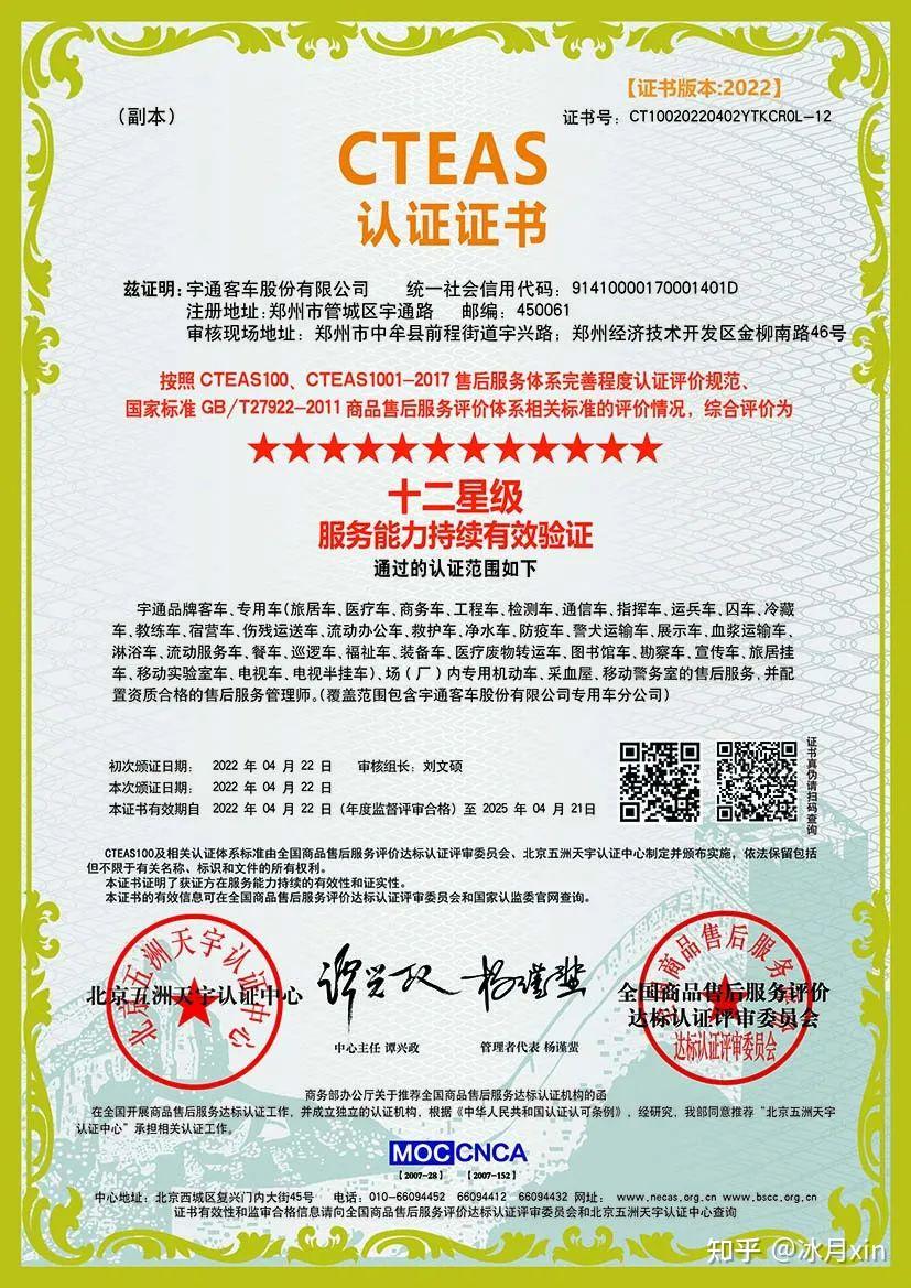 宇通服务荣获国内最高CTEAS十二星级等级认证! - 知乎