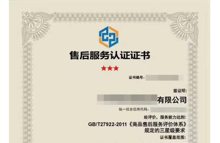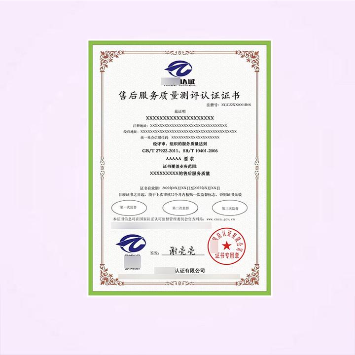 售后服务认证证书