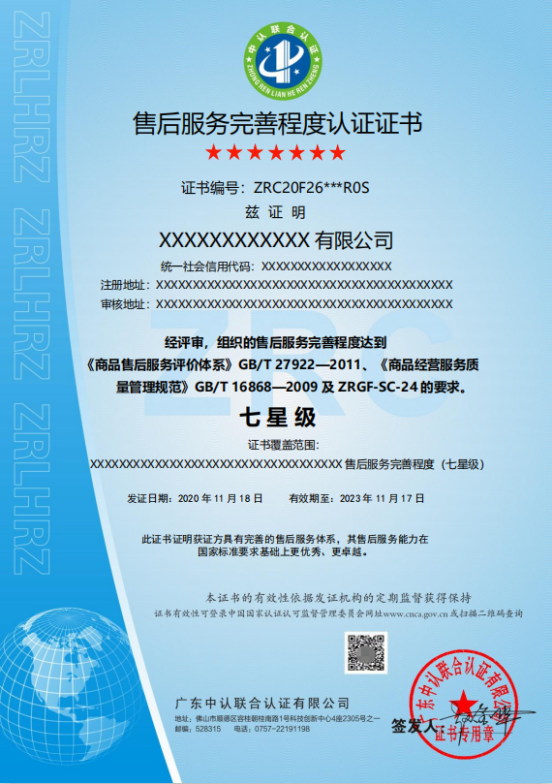 售后服务认证(五星级以上)GB/T 27922-2011、GB/T 36733-2018 - 北京中瑞联合认证有限公司