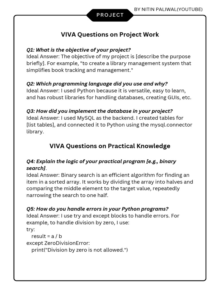 Class 12 IP Practical VIVA Questions | Python Project Viva Questions ...