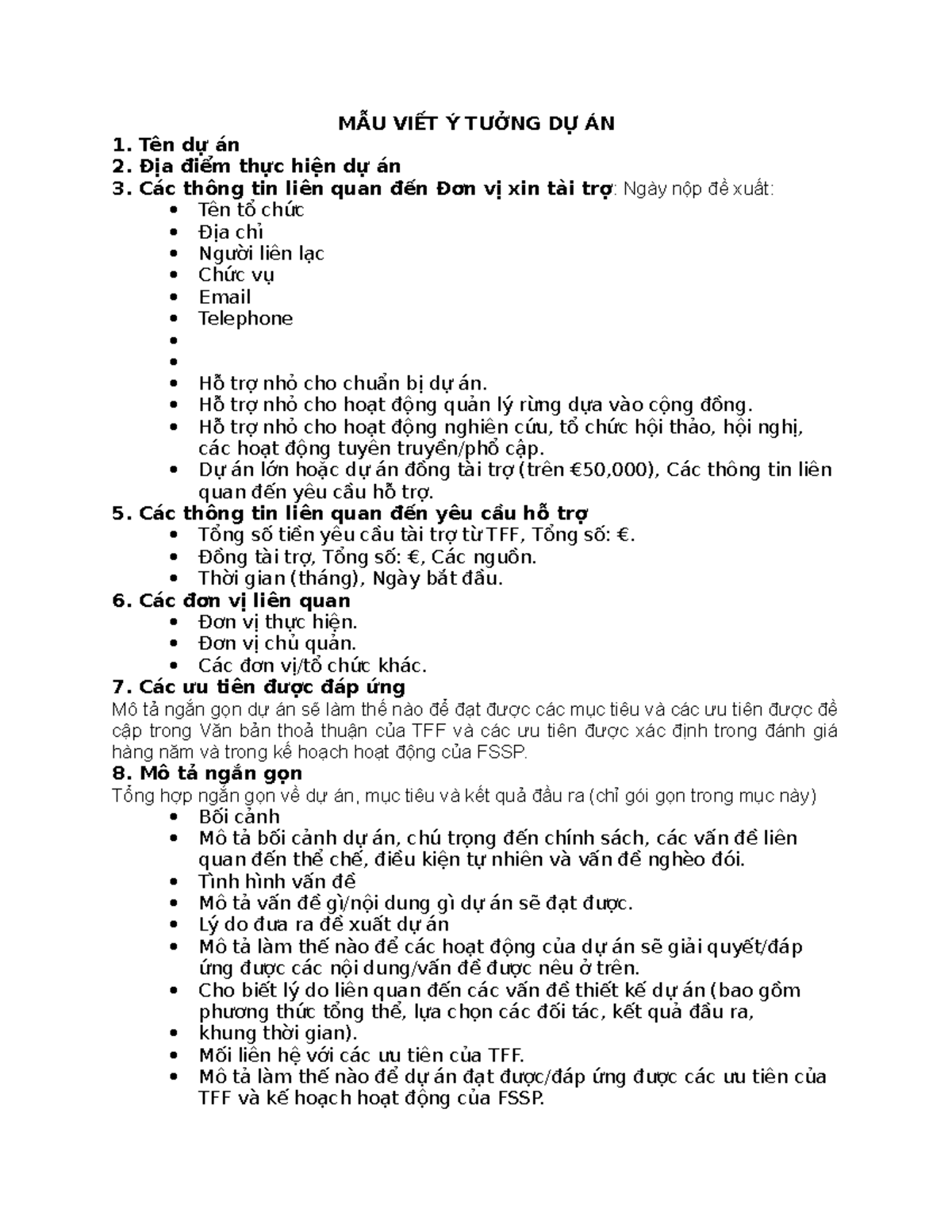 MẪU VIẾT Ý TƯỞNG DỰ ÁN - N/A - MẪU VIẾT Ý TƯỞNG DỰ ÁN Tên dự án Địa ...