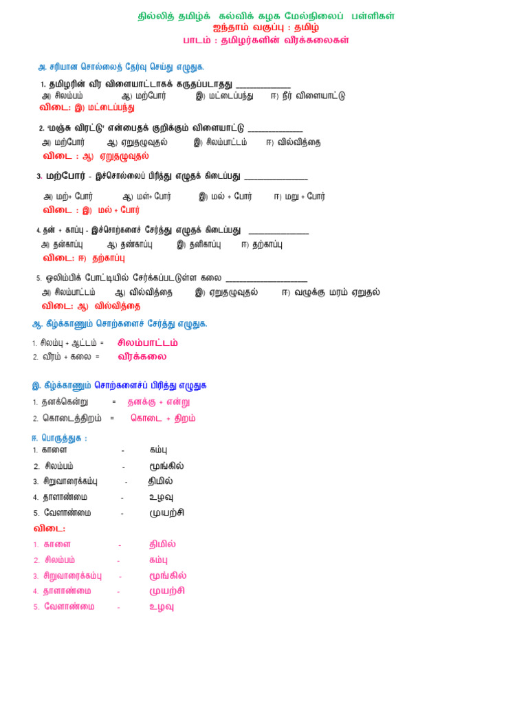Class 5 Tamil 2 | Free Interactive Worksheets | 577891