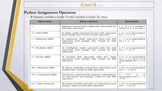 Assignment Operators in Python | Python Assignment Operator | Augmented ...
