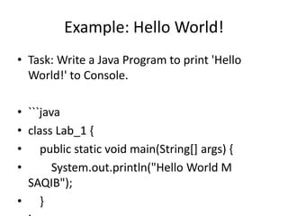 Based on this image's title: “Java 101 Intro to Java Programming | PPTX