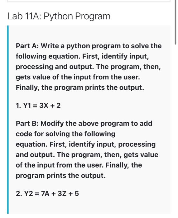 Based on this image's title: “Solved Lab 11A: Python Program Part A: Write a python | Chegg.com”