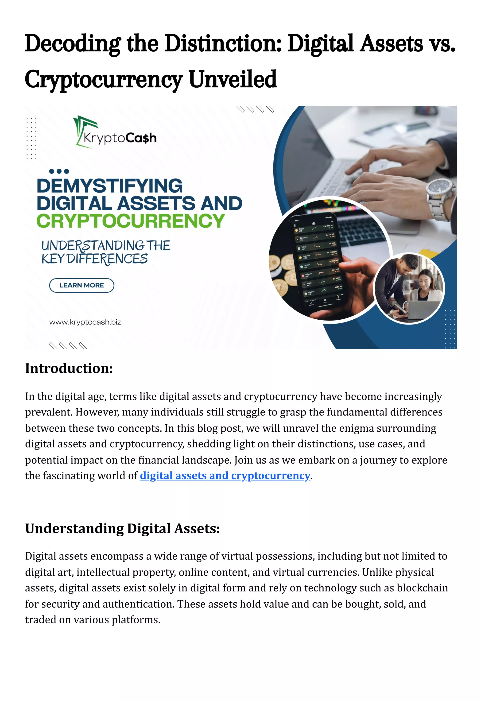 Decoding the Distinction: Digital Assets vs. Cryptocurrency Unveiled | PDF