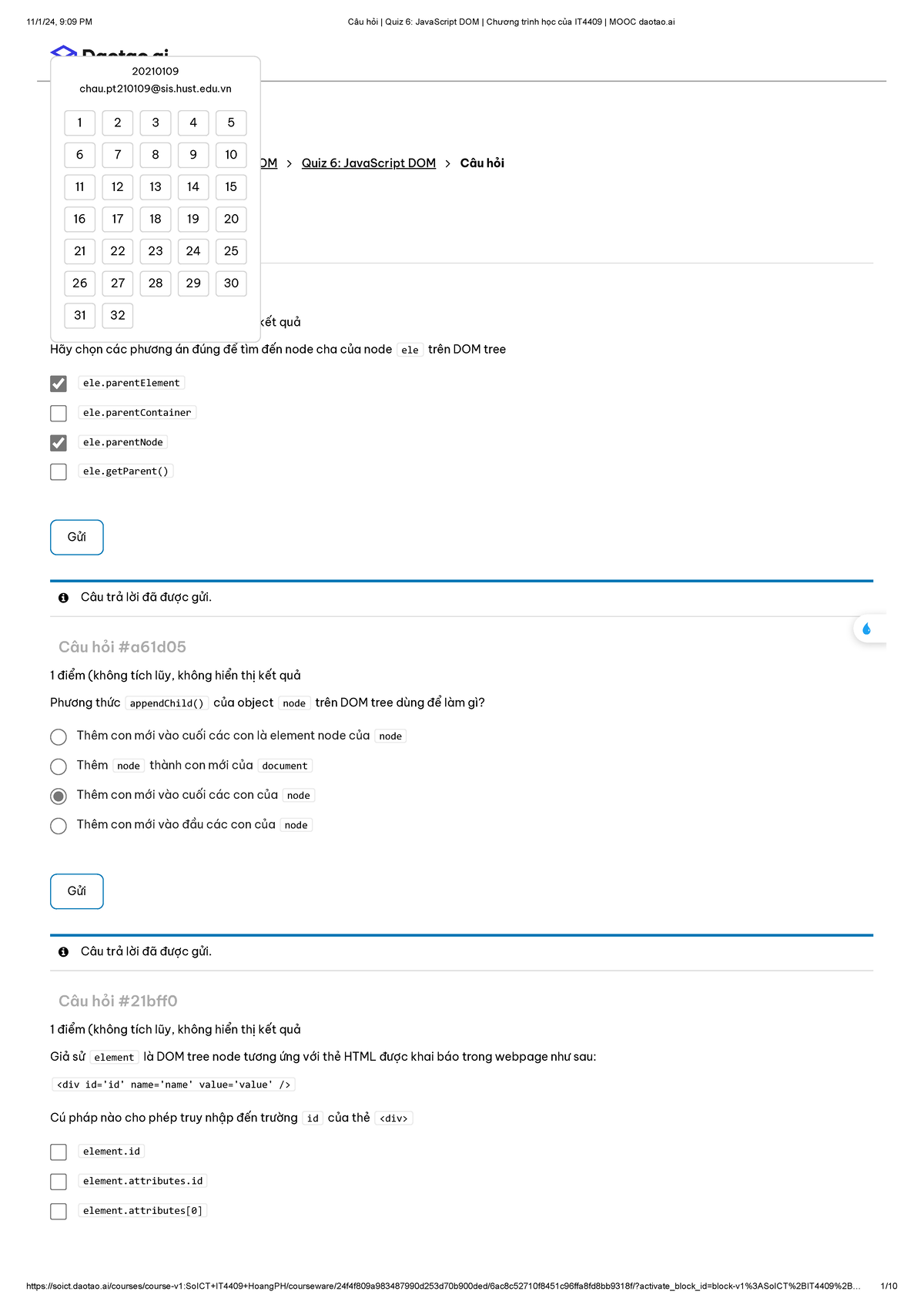 Quiz 6: JavaScript DOM Các Khái Niệm và Nút trong DOM - Studocu