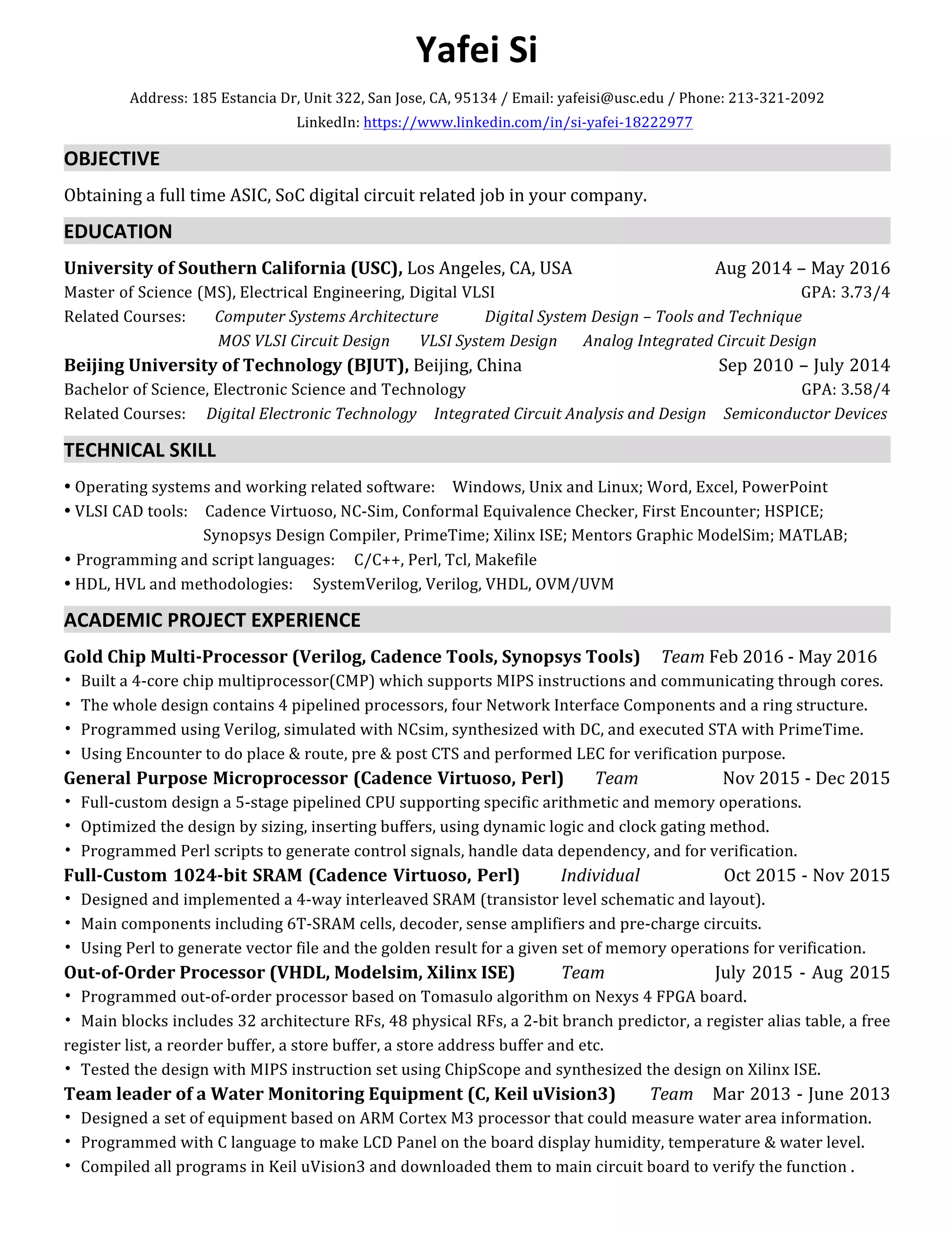 Resume_Yafei Si | PDF | Programming Languages | Computing