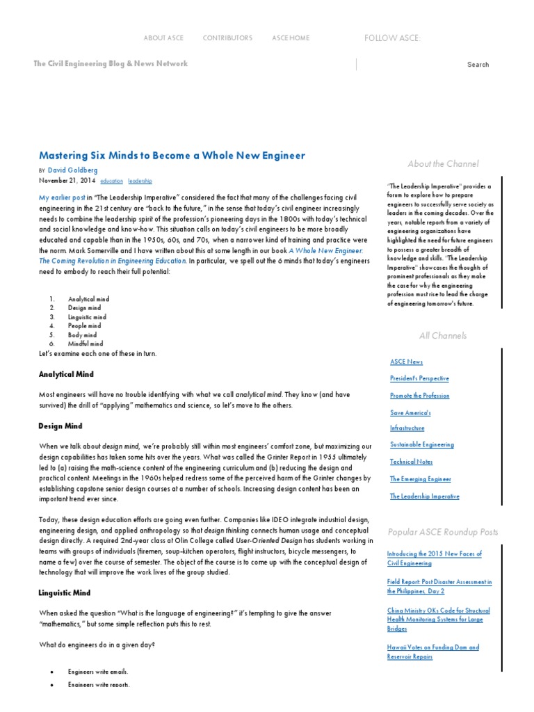 Mastering Six Minds To Become A Whole New Engineer - ASCE Roundup | PDF ...