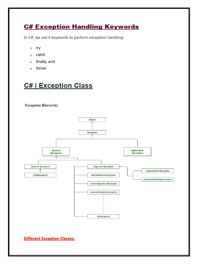 C# Exception Handling Overview | PDF | C Sharp (Programming Language ...