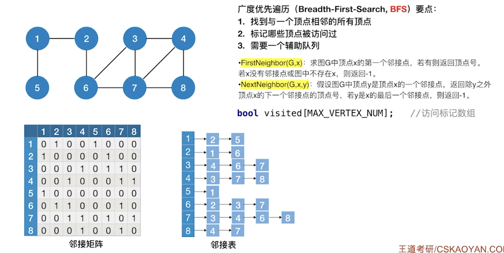 图的遍历算法:广度优先搜索和深度优先搜索(来源:王道数据结构)_王道图的广度优先算法-CSDN博客