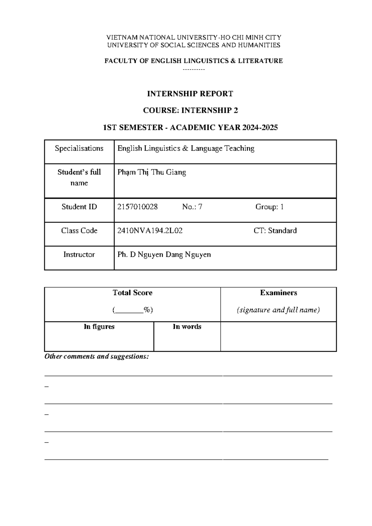 Internship - interr - INTERNSHIP REPORT COURSE: INTERNSHIP 2 1ST ...