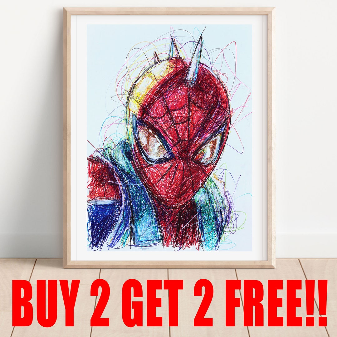 Spider-punk Ballpoint Pen Art Print, BUY 2 GET 2 FREE, Spiderman Art ...