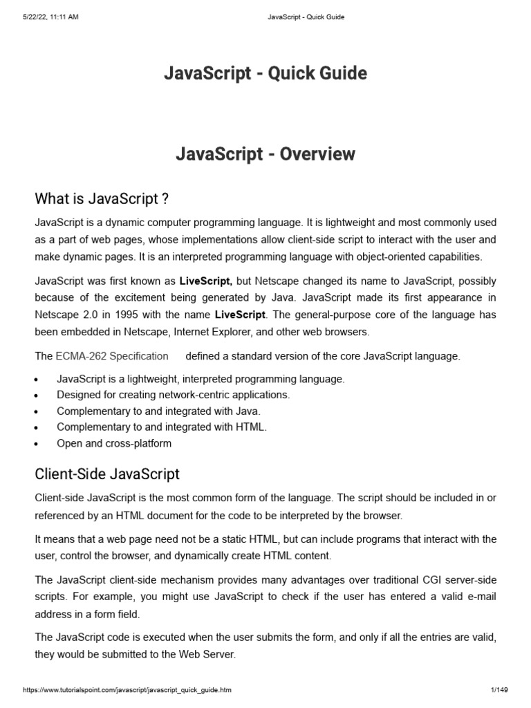 JavaScript Quick Guide | PDF | Dynamic Web Page | Java Script