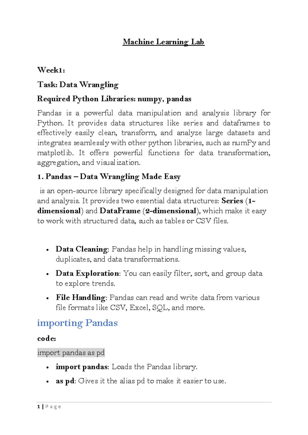 Machine Learning Lab 1: Data Wrangling with Pandas and NumPy - Studocu