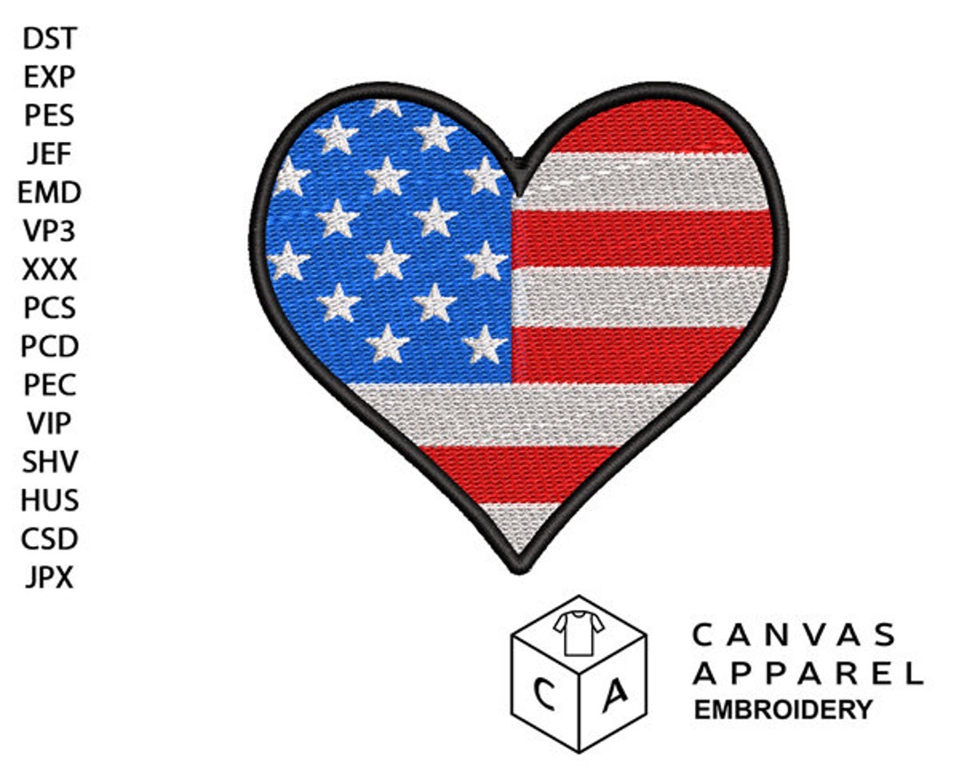 4th of July Heart Embroidery File American Flag Design Patriotic ...