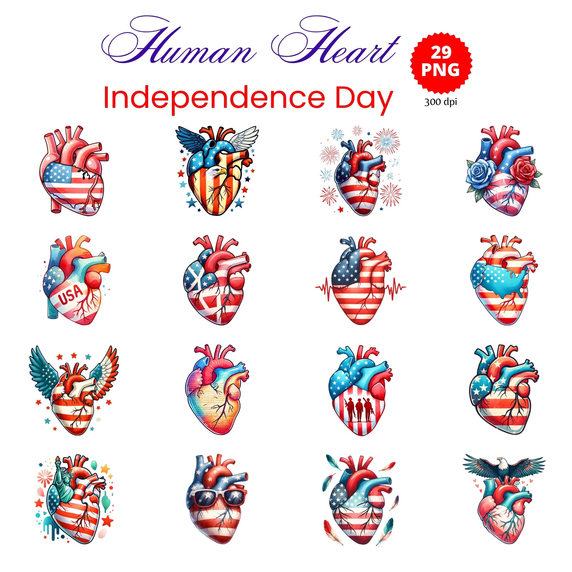 Heart for Independence Day I, Heart Png, Anatomical Heart, July 4th ...
