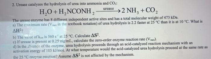 2). The hydrolysis of urea by urease undergoes | Chegg.com