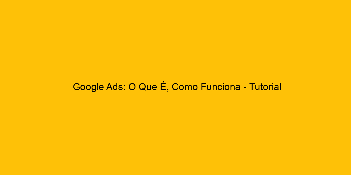 Google Ads: O Que É, Como Funciona - Tutorial Completo