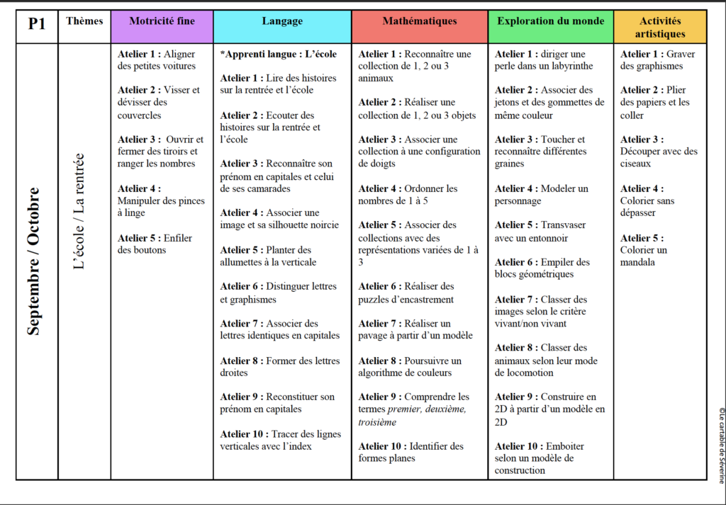 Ateliers autonomes Période 1 pour les grandes sections (GS)