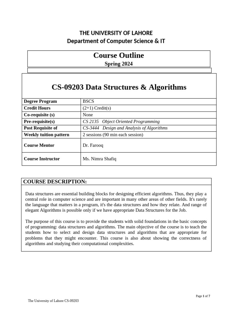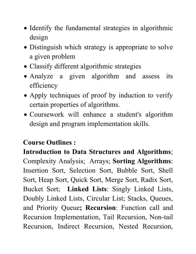 Data Structures & Algorithms Course Outline | PDF | Algorithms And Data ...