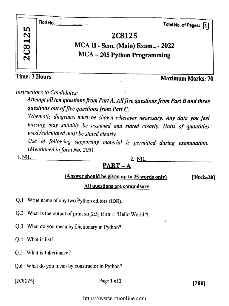 Mca 2 Sem Python Programming 2c8125 2022 | PDF