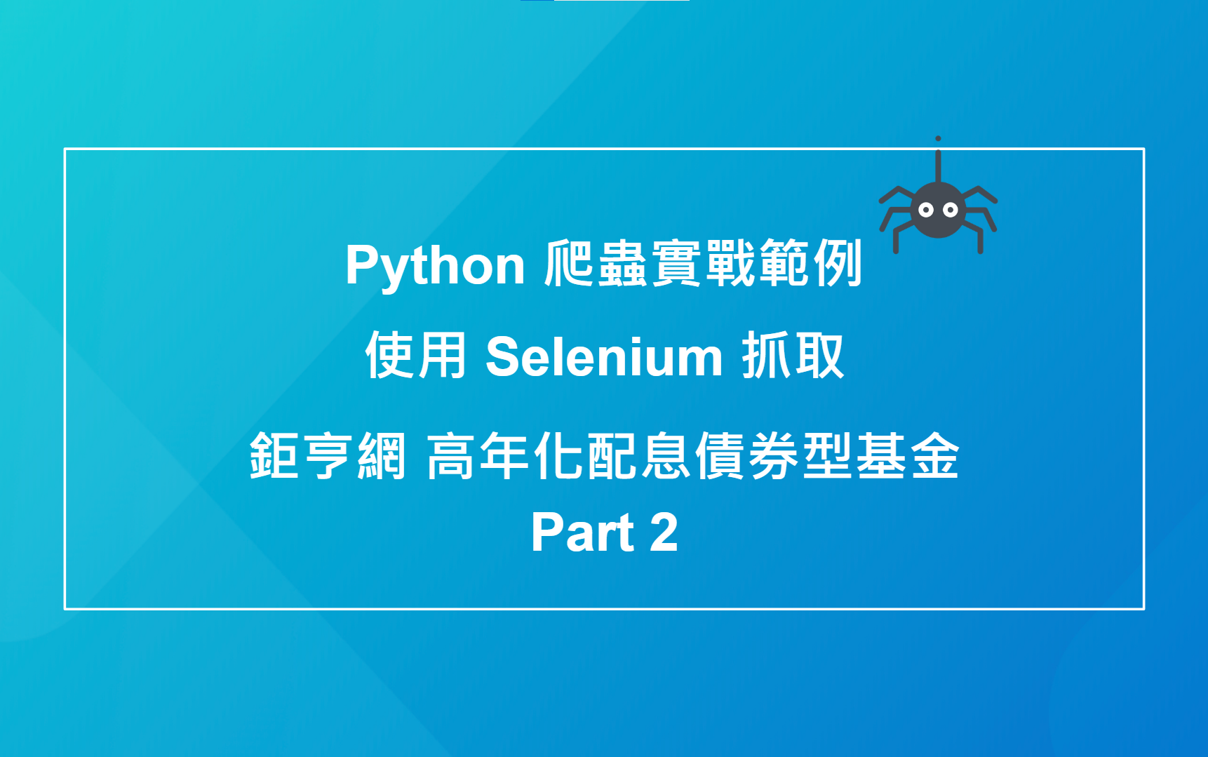 Python 爬蟲實戰範例 - 使用 Selenium 抓取 鉅亨網 高年化配息債券型基金 Part2