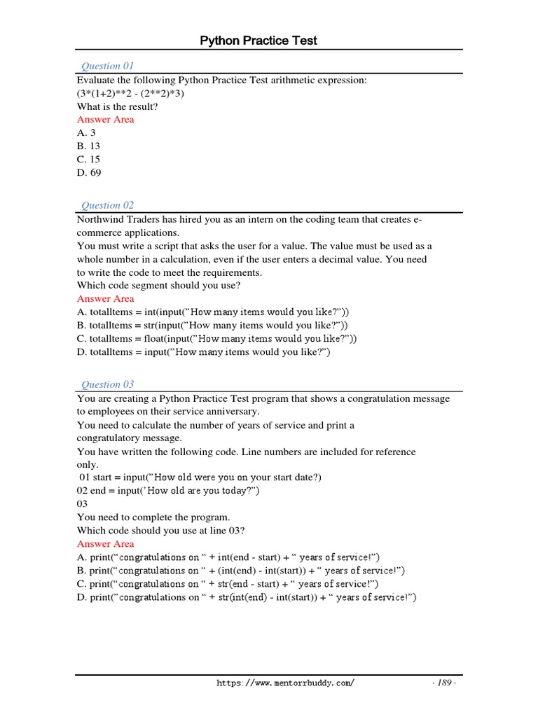 Based on this image's title: “98-381-Python Programming Practice Test”