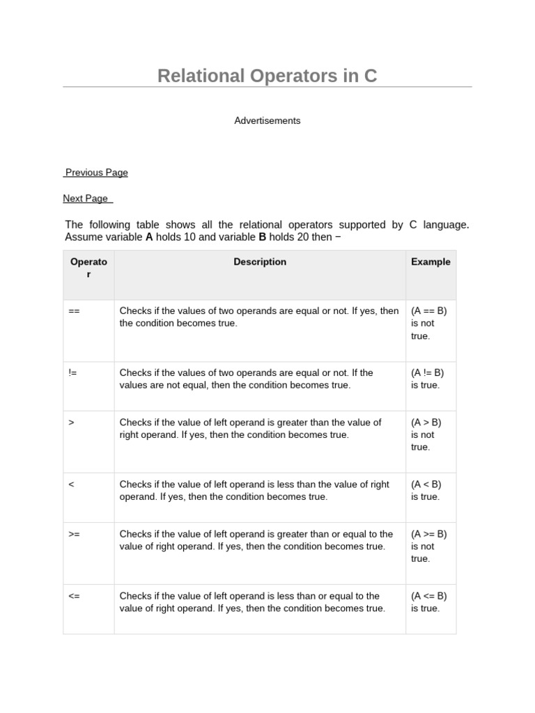 Relational Operators in C | PDF | Computer Engineering | Computer ...
