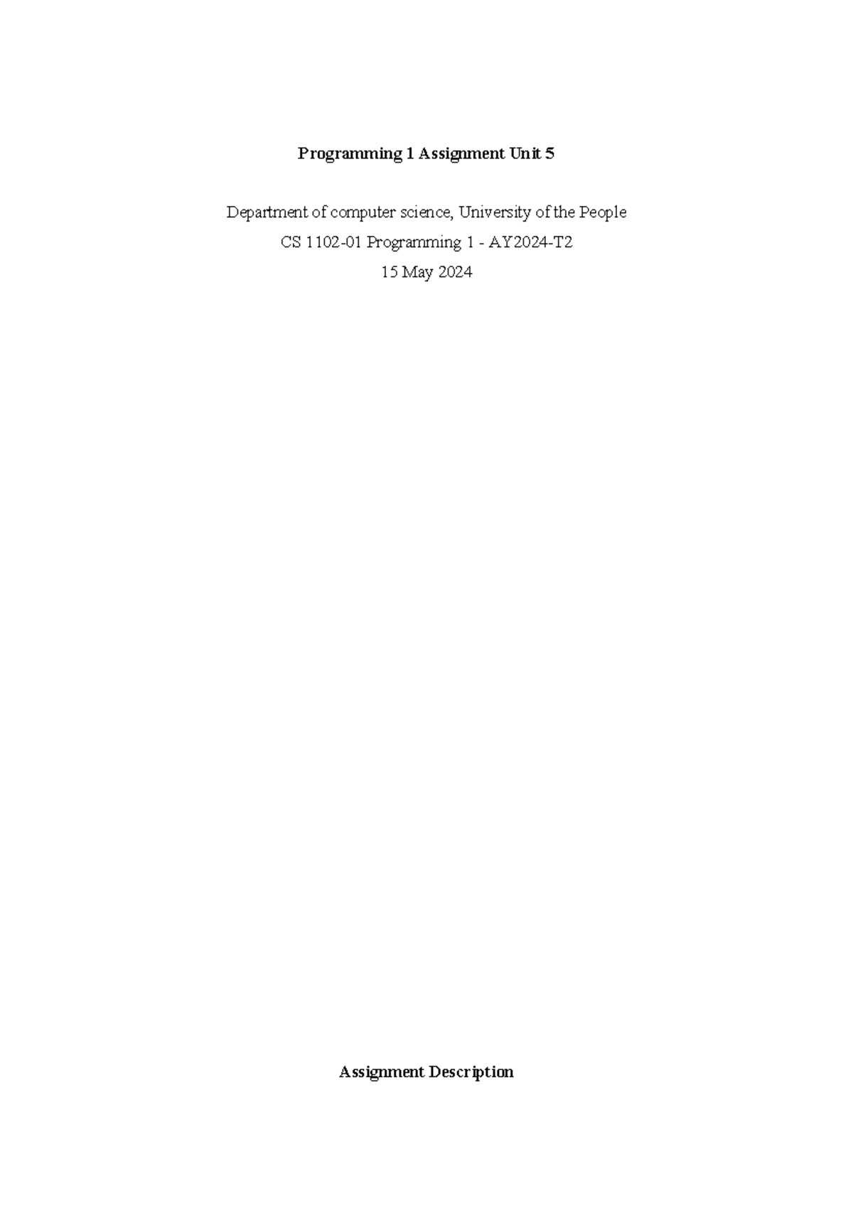 Assignment 5 programming 1 - Programming 1 Assignment Unit 5 Department ...