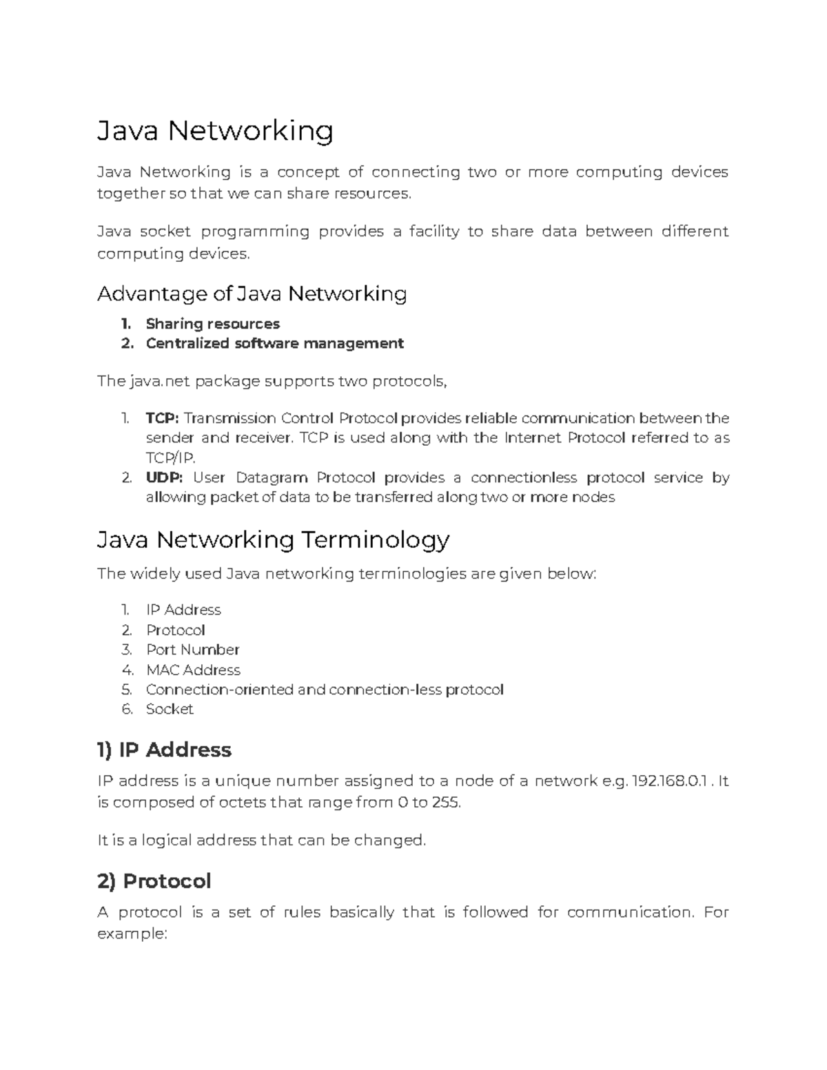 Java Notes - Java Networking: Java provides a comprehensive set of APIs ...