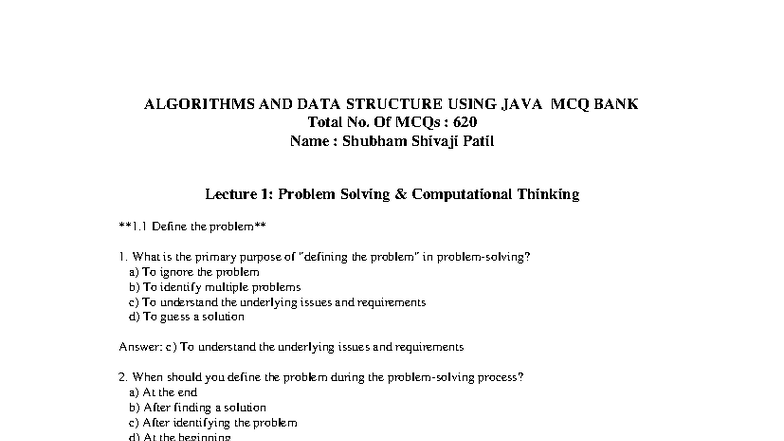 DSA 688580446 MCQ Bank: Algorithms & Data Structures in Java - Studocu