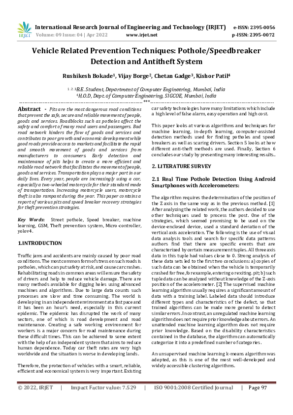 (PDF) Vehicle Related Prevention Techniques: Pothole/Speedbreaker ...