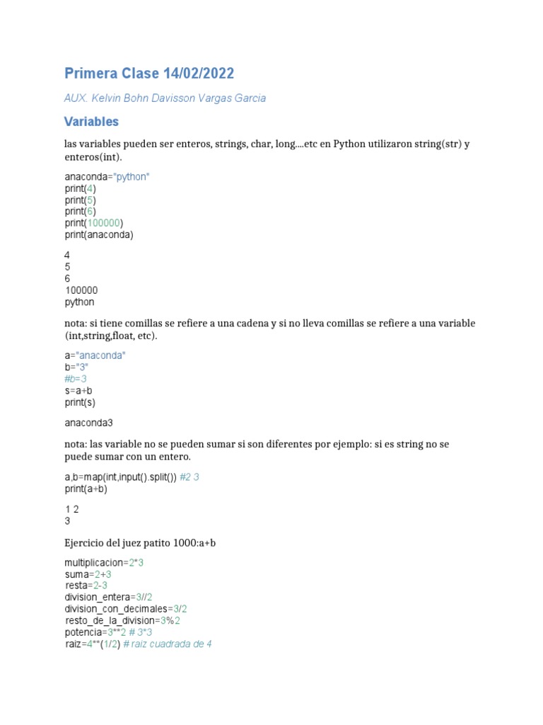 Tema #2. Variables en Python. | PDF | Python (lenguaje de programación ...