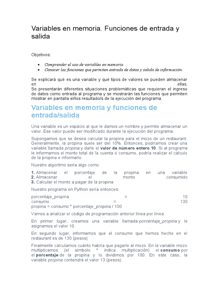 Variables Python | PDF | Métodos y materiales de enseñanza | Informática