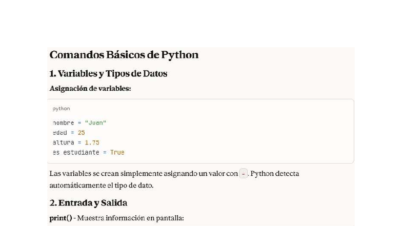 Comandos Básicos de Python: Variables, Tipos y Funciones - Studocu