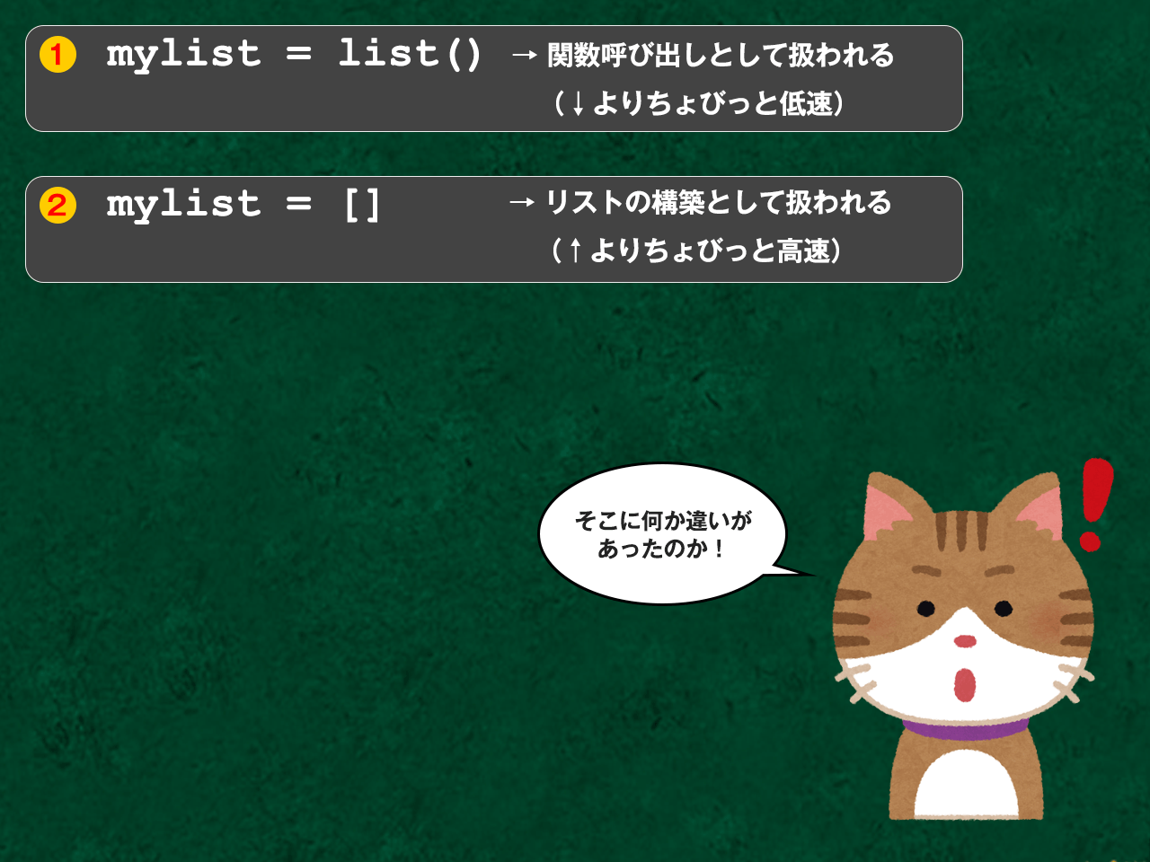 [Pythonクイズ]「list()」vs「[]」。空のリストを作る2つの方法に振る舞いの差はあるのかい?:Pythonステップアップクイズ ...