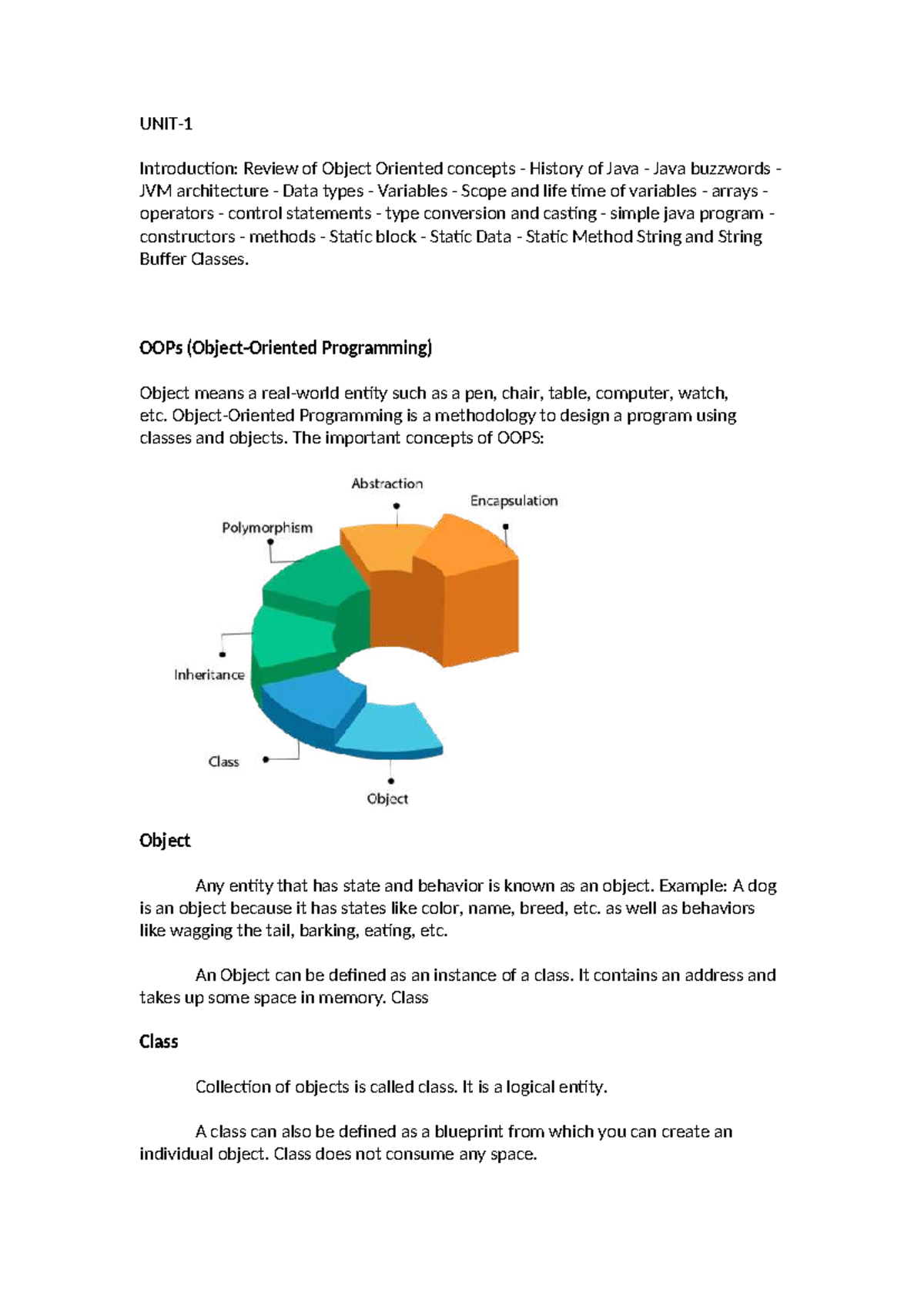 Java Unit 1 - notes for the subject java Unit1 - UNIT- Introduction ...