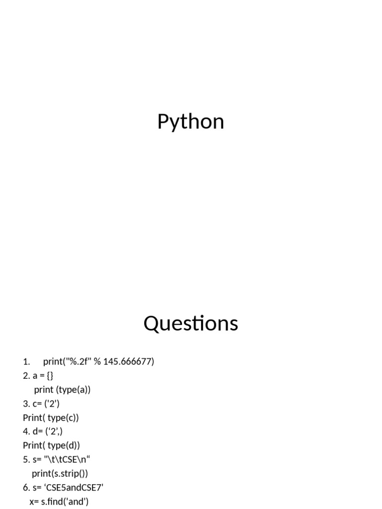 Based on this image's title: “PYTHON PROGRAMMING QUESTIONS | PDF”
