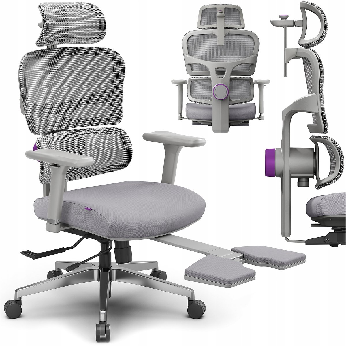 Fotel ergonomiczny biurowy obrotowy z podnóżkiem do biurka szary Office ...