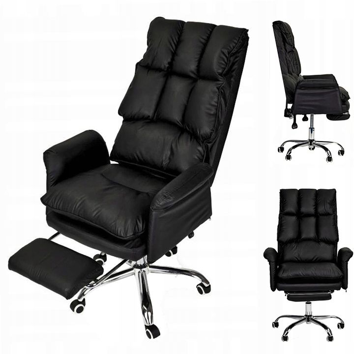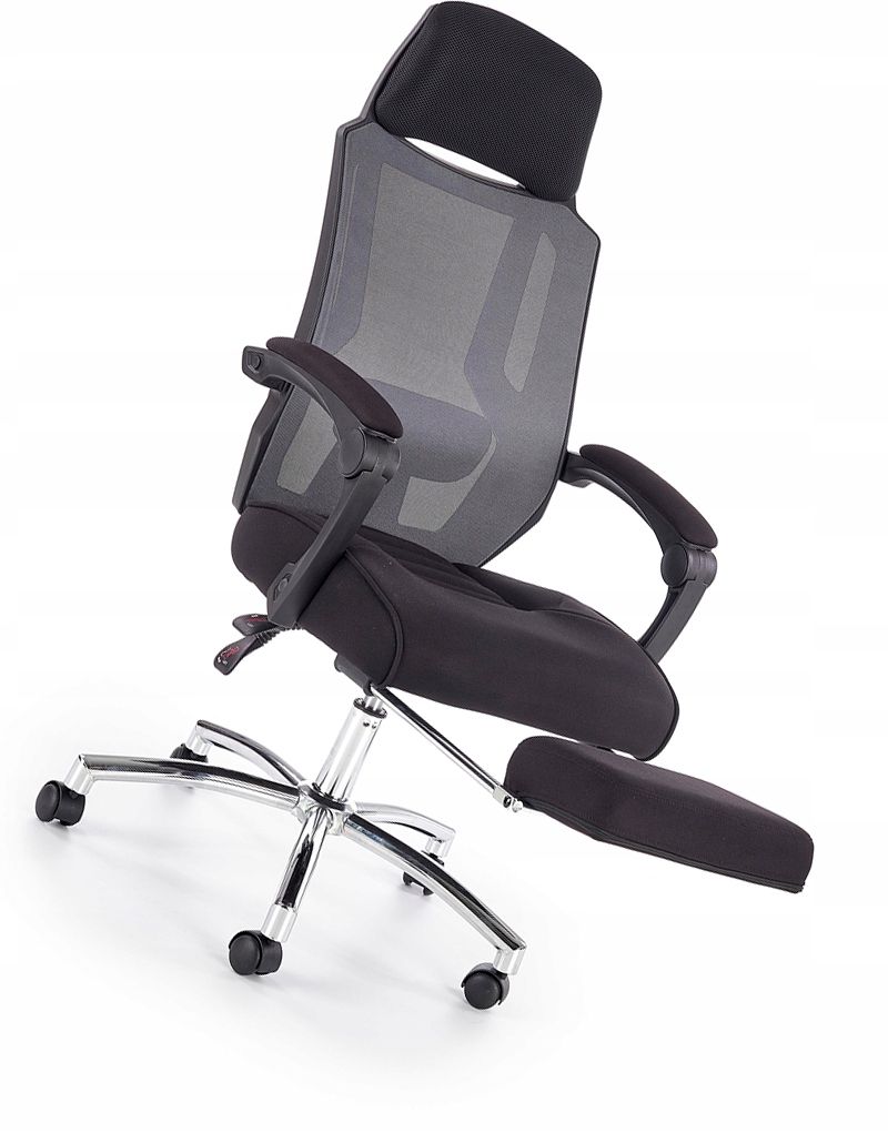 Fotel biurowy ergonomiczny obrotowy krzesło z podnóżkiem czarny Office ...