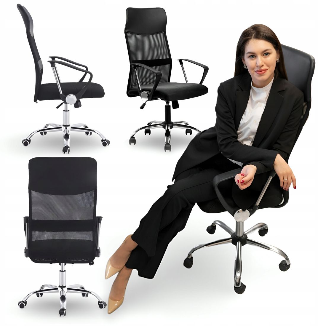 Krzesło Obrotowe Biurowe Fotel Ergonomiczny Biurowy Obrotowy Czarny ...