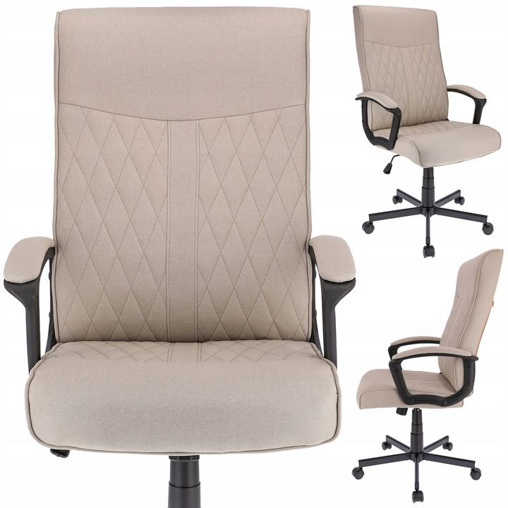 Fotel Biurowy Krzesło Obrotowe Tapicerowany Biurka Tkanina Beż OLMO ...