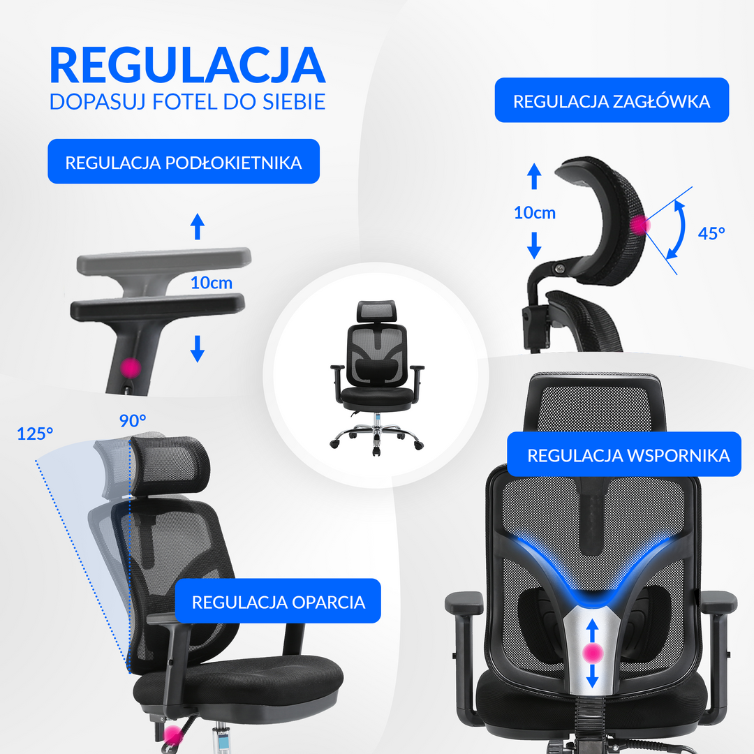 Fotel biurowy obrotowy regulacje lędźwi ergonomia (XME100GAHX-3MBL ...