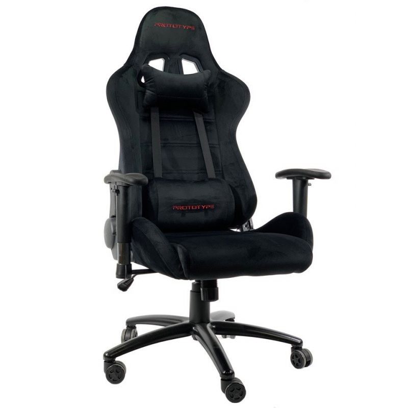 Fotel gamingowy Prototype Enzo tkanina czarny z poduszką lędźwiową ...