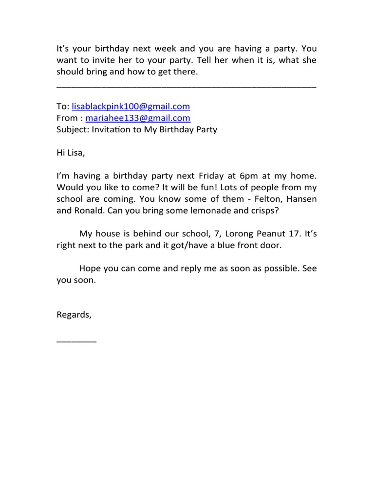 How To Write A Birthday Party Invitation Letter Sle - Infoupdate.org