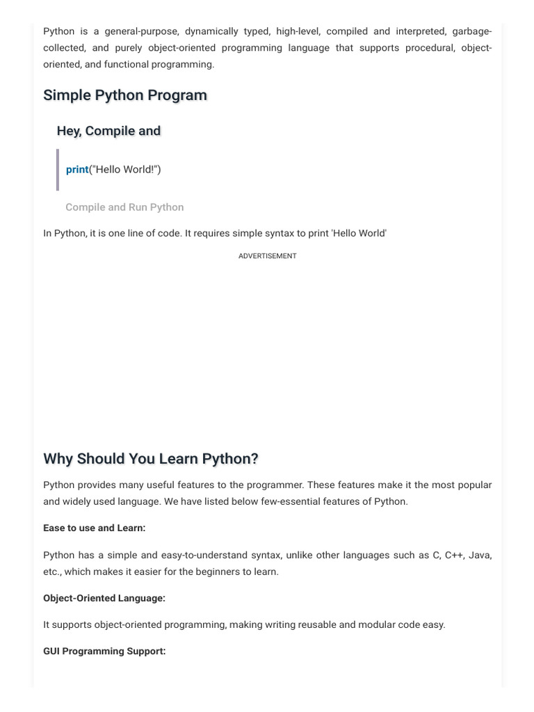 Class 2 Introduction Python | PDF | Python (Programming Language) | Web ...