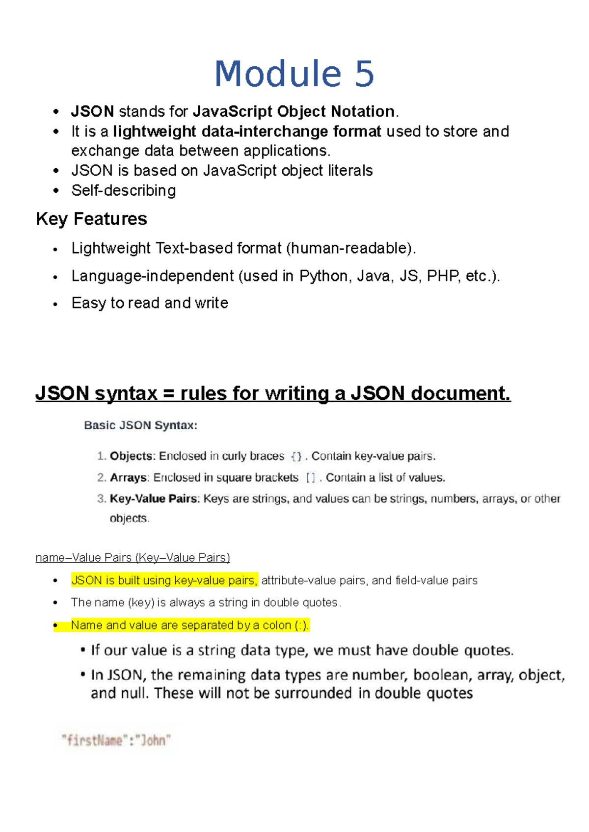 Web5 - Module 5: Introduction to JSON and Its Key Features - Studocu